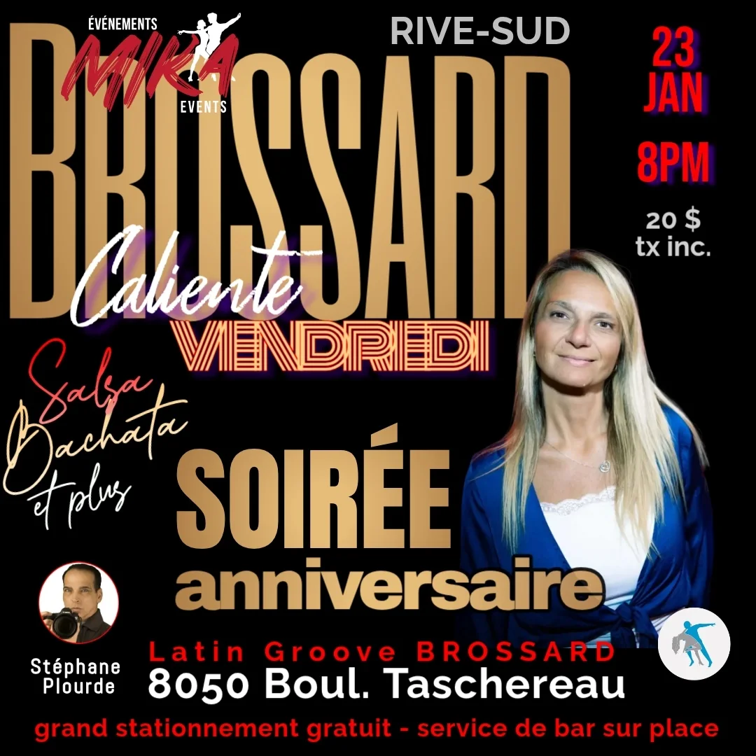 Jan 9 8:00 am - 5:00 pm Brossard Vendredi Caliente – Soirée Anniversaire Latin Groove Brossard 8050 G Bd Taschereau, Brossard Détails des Évènement Recevoir l’Itinéraire à suivre