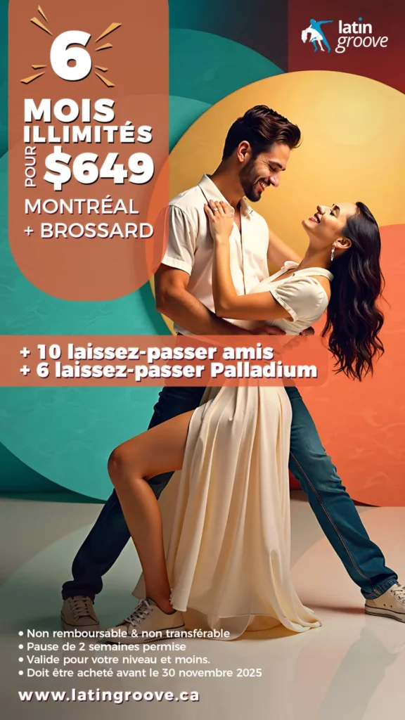 Pour une durée limitée, Latin Groove vous offre 6 mois de cours illimités dans nos studios de Montréal et Brossard pour seulement 649 $.
