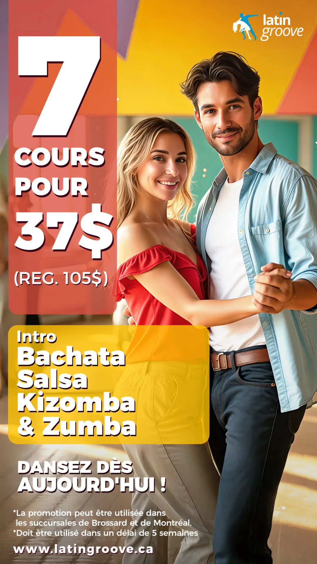 Que vous soyez amateur de Salsa et Bachata, nous avons ce qu’il vous faut. Des cours dédiés sont disponibles chaque semaine, réservez votre place et profitez de notre offre à 37$ pour 7 cours.