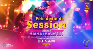 Rejoignez-nous pour la Soirée de Fin de Session à Latin Groove le 5 Sep 2025, avec un atelier Salsa dynamique, Bachata, et des rythmes latins avec DJ Sam toute la nuit !